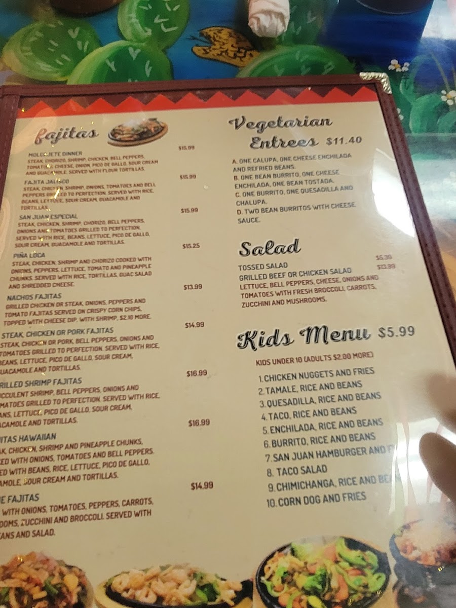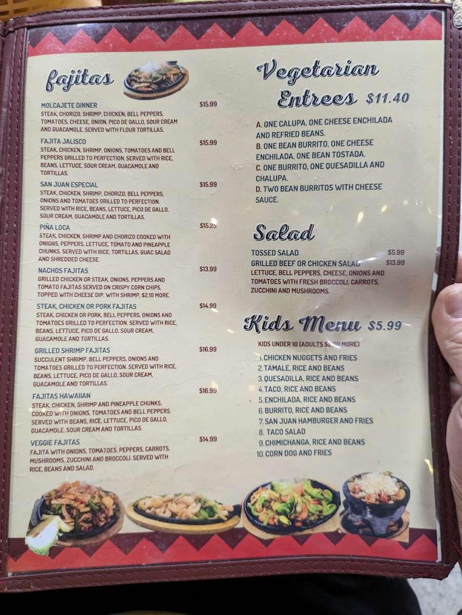 Tender strips of steak or chicken, sautéed onions, bell peppers and tomatoes. Served with lettuce guacamole, sour cream, pico de gallo, rice, beans and tortillas.